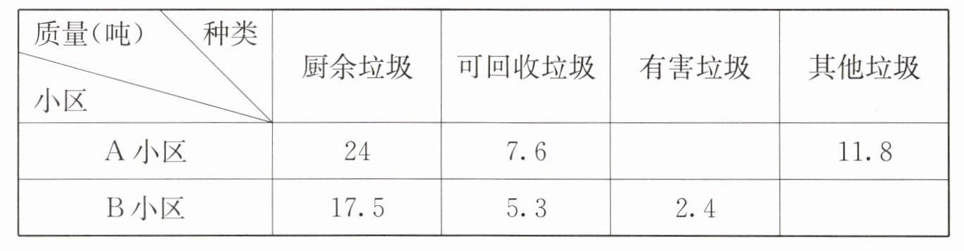 )吨;其他垃圾中A小区比B小区少5.2吨,B小区其他垃圾有(17