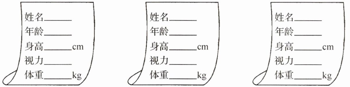| [同学 3 姓名] | [同学 3 年龄] | [同学 3 身高] | [同学 3 视力] | [同学 3 体重] |