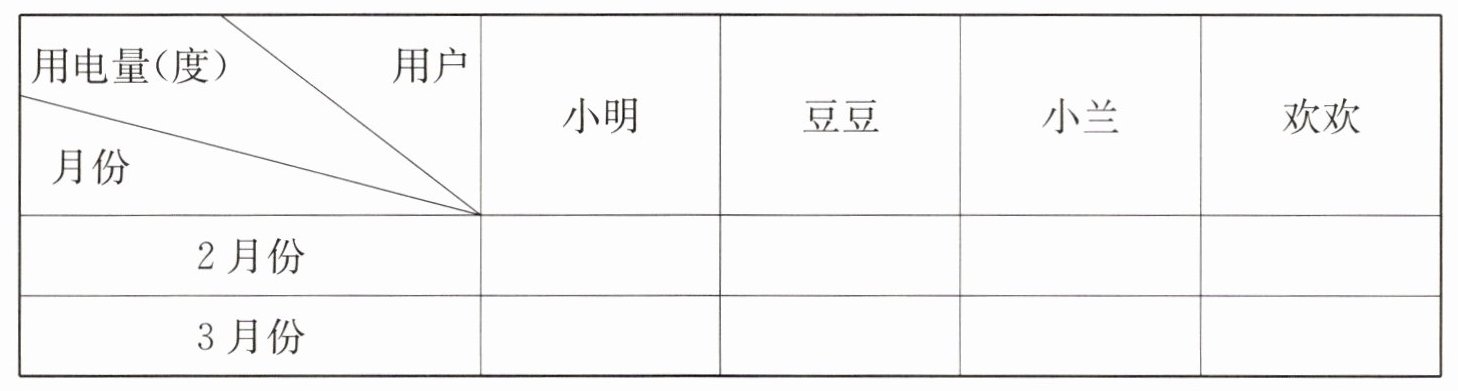 3. 下面是贝贝调查好朋友家近两个月用电情况的统计表。