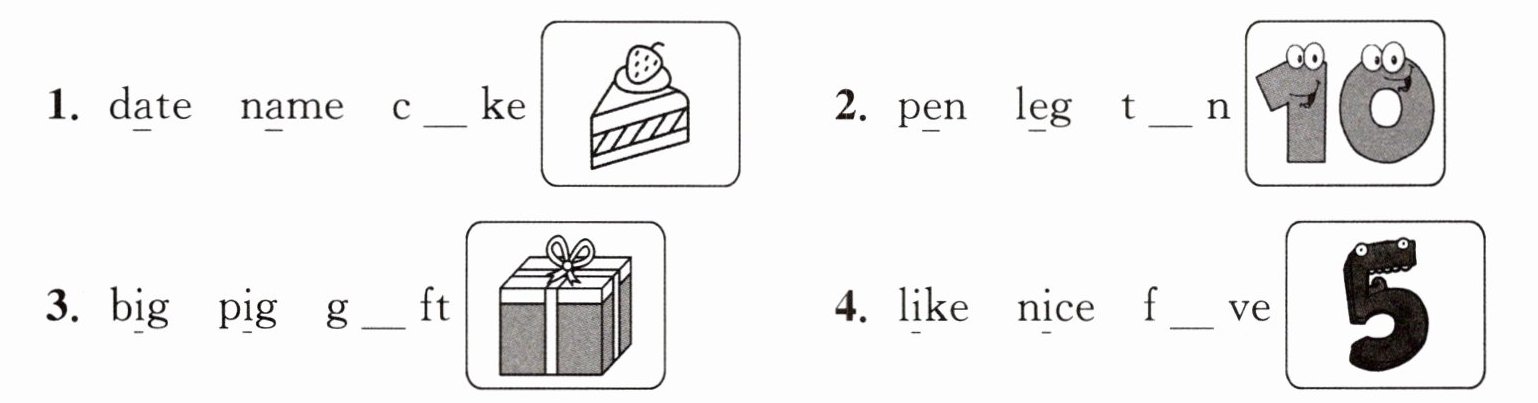 一、根据画线字母的发音规律及图片提示,补全单词。