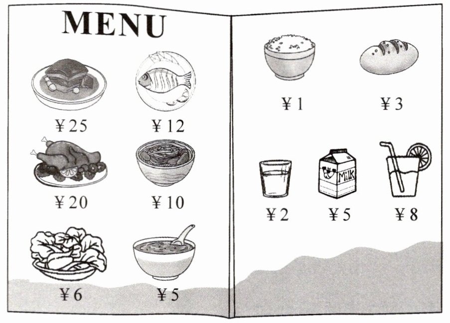 ).任务一:根据菜单和对话内容,选择合适的答语,完成第1小题。