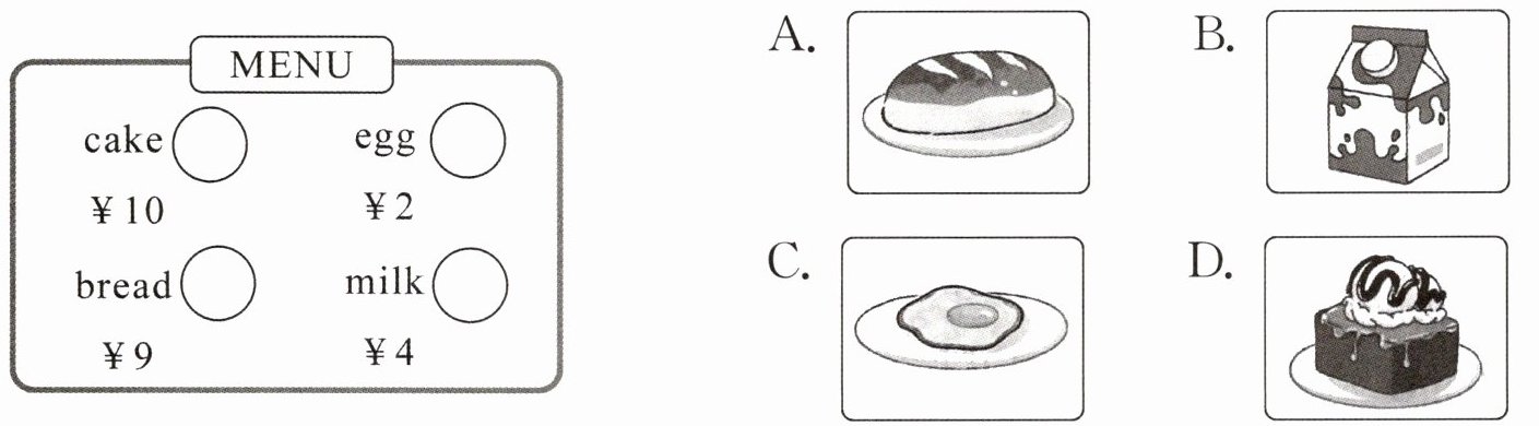 一、餐厅正在准备今日菜单。请你帮工作人员给食物匹配图片,将序号写在圆圈内。