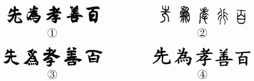 2. 下列对这四幅“百善孝为先”书法作品的欣赏,不正确的一项是(