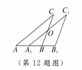 12. 如图,三角形ABC沿AB方向向右平移后到达三角形$ A _ { 1 } B _ { 1 } C _ { 1 } $的位置,BC与$ A _ { 1 } C _ { 1 } $相交于点O,若$ ∠C = 30 ^ { \circ } $,则$ ∠A _ { 1 } OC $的度数为______