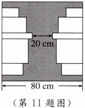 11. 如图,正方形中有一个由若干个长方形组成的对称图案,其中正方形边长是80cm,则图中阴影图形的周长是(