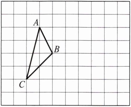 9. 如图,在方格纸中,每个小正方形的边长均为1个单位长度.有一个三角形ABC,它的三个顶点均与小正方形的格点重合,将三角形ABC向右平移3个单位长度,再向下平移1个单位长度得到三角形$ A _ { 1 } B _ { 1 } C _ { 1 } $,请在方格纸中画出三角形$ A _ { 1 } B _ { 1 } C _ { 1 } $.