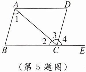 5. 如图,已知四边形ABCD,连接AC,延长BC到点E,下列说法中,正确的有(