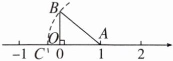 11. 如图,数轴上的点A表示的数是1,$OB⊥OA$,垂足为O,且$BO= 1$,以点A为圆心,AB长为半径画弧交数轴于点C,则点C表示的数为(