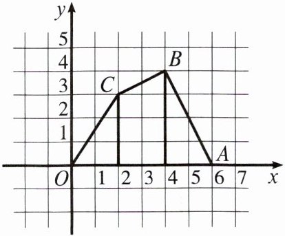 3. 如图,在平面直角坐标系中,四边形 OABC 各个顶点的坐标分别为$O(0,0),A(6,0),B(4,4),C(2,3)$,则四边形 OABC 的面积为____。