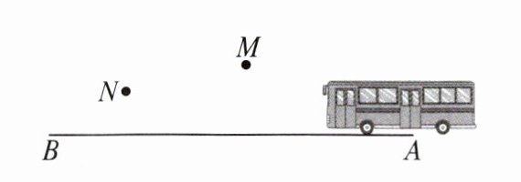 14. 如图,一辆汽车在直线形的公路上由A向B行驶,M,N分别是公路AB同侧的两所学校.