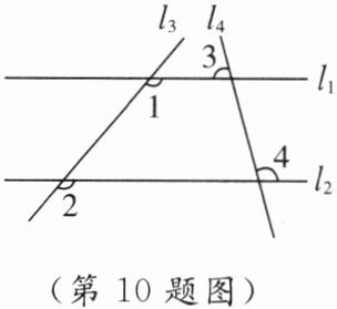 10. 如图,直线$l_{1}和l_{2}被直线l_{3}和l_{4}$所截,$∠1= ∠2= 130^{\circ },$$∠3= 75^{\circ }$,则$∠4$的度数为(