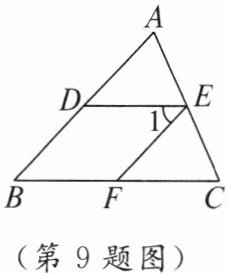 9. 如图,$∠A= ∠CEF,∠1= ∠B,DE// BC$吗? 为什么?