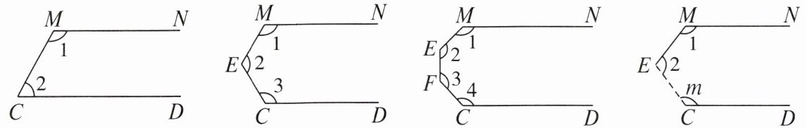 ;(3)试探究$∠1+∠2+∠3+∠4+... +∠m=$