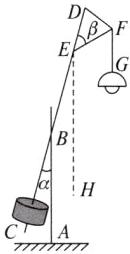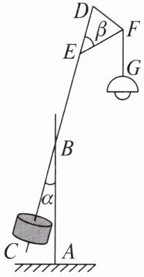 一种路灯的示意图如图所示,其底部支架 AB 与吊线 FG 平行,灯杆 CD 与底部支架 AB 所成锐角$α=15^{\circ }$.顶部支架 EF 与灯杆 CD 所成锐角$β=45^{\circ }$,则 EF 与 FG 所成锐角