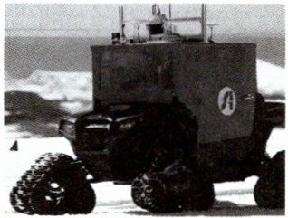 9. 我国自主研发的四轮长航程极地漫游机器人如图所示,科考队员在附近遥控机器人工作。已知机器人质量为$500kg$,每条履带与地面的接触面积为$1000cm^{2}$,若南极某处冰面能承受的最大压强为$4×10^{4}Pa$,$g取10N/kg$。