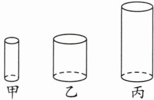 8. 如图所示,有三个实心圆柱体甲、乙、丙,放在水平地面上,其中甲、乙高度相同,乙、丙的底面积相同,三者对地面的压强相等,下列判断正确的是(