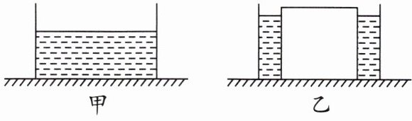 8. 如图甲所示,底面积为$300cm^2$的薄壁圆柱形容器放置在水平桌面上,容器中盛有6cm深的水;然后将一棱长为10cm的实心正方体铝块放入水中,铝块部分露出水面,如图乙所示。则放入铝块后,水对容器底部的压强为____