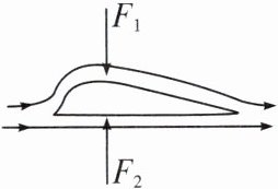 。机翼的模型如图,机翼上方受到空气的压力$F_1$小于