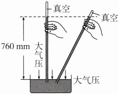 B.玻璃管倾斜放置时,玻璃管内的水银柱会变长