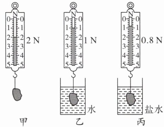 3. (多选)某同学用石块、细线、弹簧测力计、烧杯、水和食盐等器材,进行了如图所示的实验探究。下列探究结论正确的是($ρ_{水}= 1.0×10^{3}kg/m^{3}$)(
