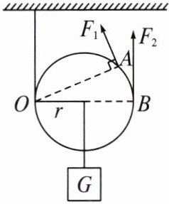 2. 如图所示,小明在“探究动滑轮工作特点”的实验中,滑轮第一次受到 $ F_1 $ 的作用,第二次受到竖直向上 $ F_2 $ 的作用,物体都被匀速向上提起。已知物体所受重力为 $ G_{物} $。若不计摩擦和绳重,则下列说法正确的是(