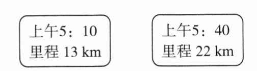 (1) 运动的路程 $ s = 22 \text{ km} - 13 \text{ km} = 9 \text{ km} $