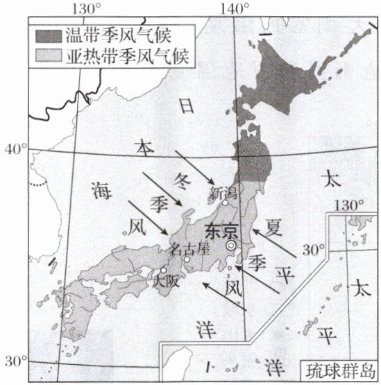 “亭亭白桦,悠悠碧空,微微南来风……”日本民歌《北国之春》生动地描述了日本地理环境特征。读图,完成5—7题。