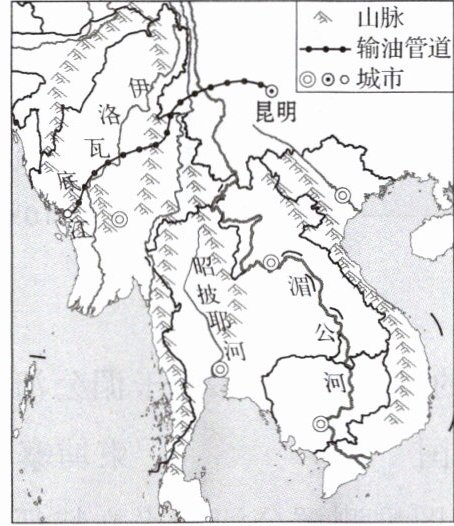 3. 图中输油管道建设过程中可能遇到的主要困难是(