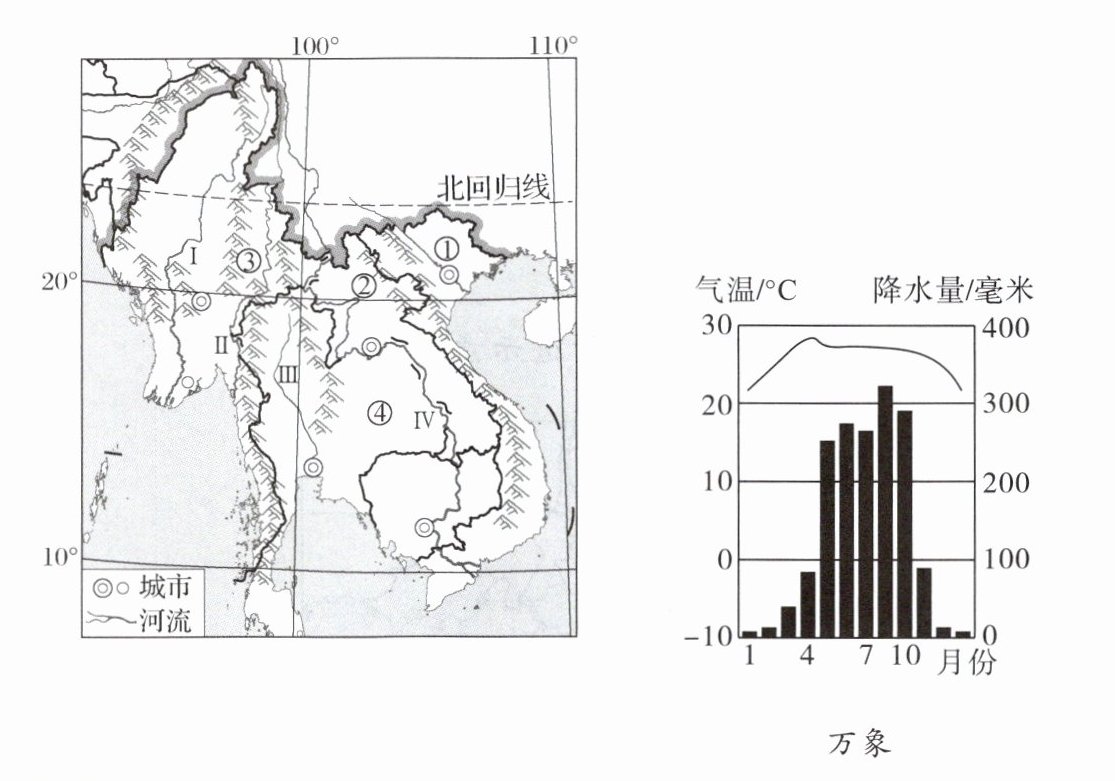7. 万象是湄公河沿岸城市,据图推测湄公河的水文特征是(
