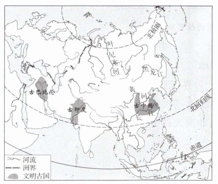 (3)亚洲的三大文明古国都分布在河流沿岸,说出河流对文明古国形成的有利影响。