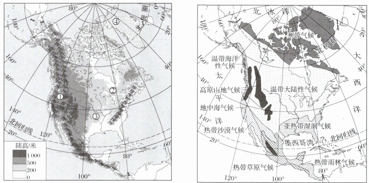 1. 下列关于北美洲自然地理特征的叙述,正确的是(