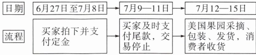 车厘子(一种水果)原产于小亚细亚半岛的安纳托利亚高原,味道鲜美,但容易腐烂。某网店采用“先订购,后采摘”的预售方式销售美国车厘子,力求进口水果从生源地直达消费者。下图示意销售流程。读图,完成 13—14 题。