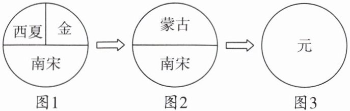 (1)过程:南宋时,中原王朝长期与西夏、金保持并立局面。1206 年,铁木真完成蒙古草原的统一,之后,发动了大规模的扩张战争。1227 年,蒙古军队灭西夏。此后,蒙古和南宋结盟,南北夹击金朝,1234 年,蒙古灭金。金朝灭亡后,南宋和蒙古直接对峙的局面形成。1276 年,元军攻入临安,南宋灭亡。1279 年,元军攻灭南宋残部,完成了全国的统一。