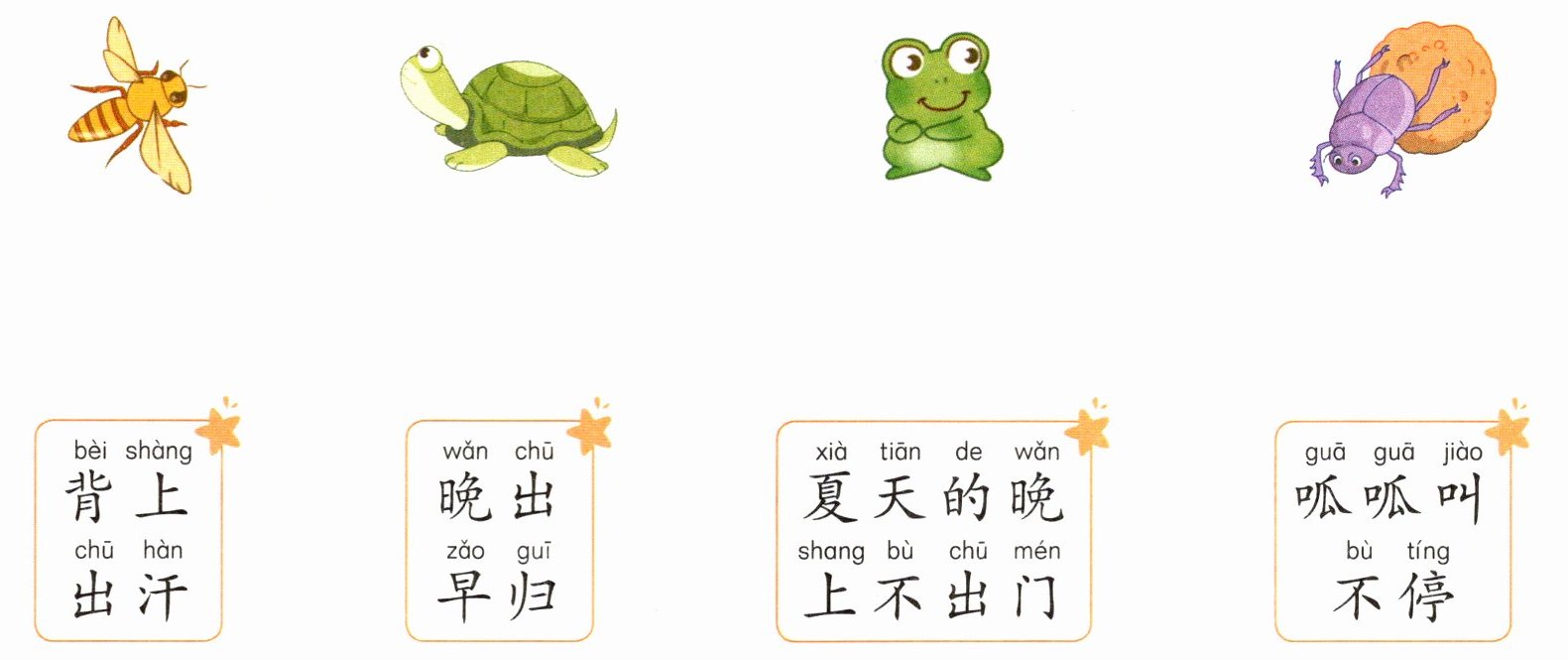 青蛙跳着来了,说:“夏天下雨前,我呱呱叫不停。”