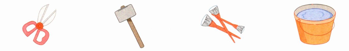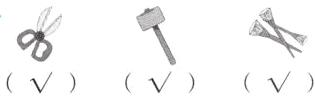 2. 获取信息 霜的工具箱里有什么呢?请在相应物品下方的括号里画“√”。