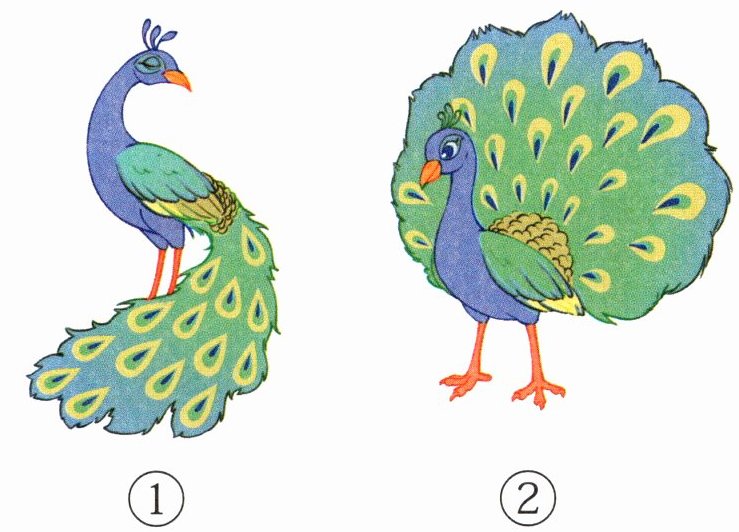 2.【进行联想】仔细观察孔雀的尾巴,写一写。