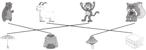 [解析]本题考查获取信息。定位到文章第2、3自然段可知,小熊送来了干衣服,小山羊送来了厚棉被,小猴送来了雨伞,小松鼠送来了蘑菇,将对应元素连接起来即可。