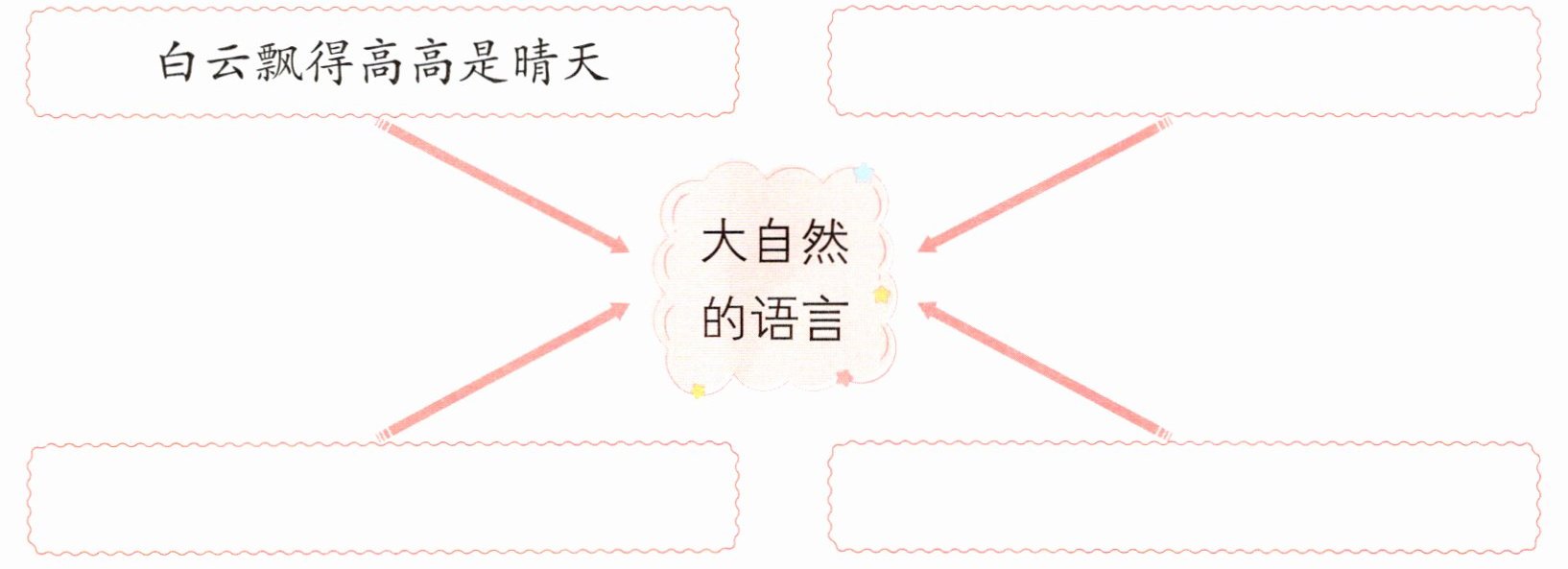 1.获取信息 朗读诗歌,说说诗中介绍了哪几种大自然的语言,找一找、填一填,把下面的思维导图补充完整。
