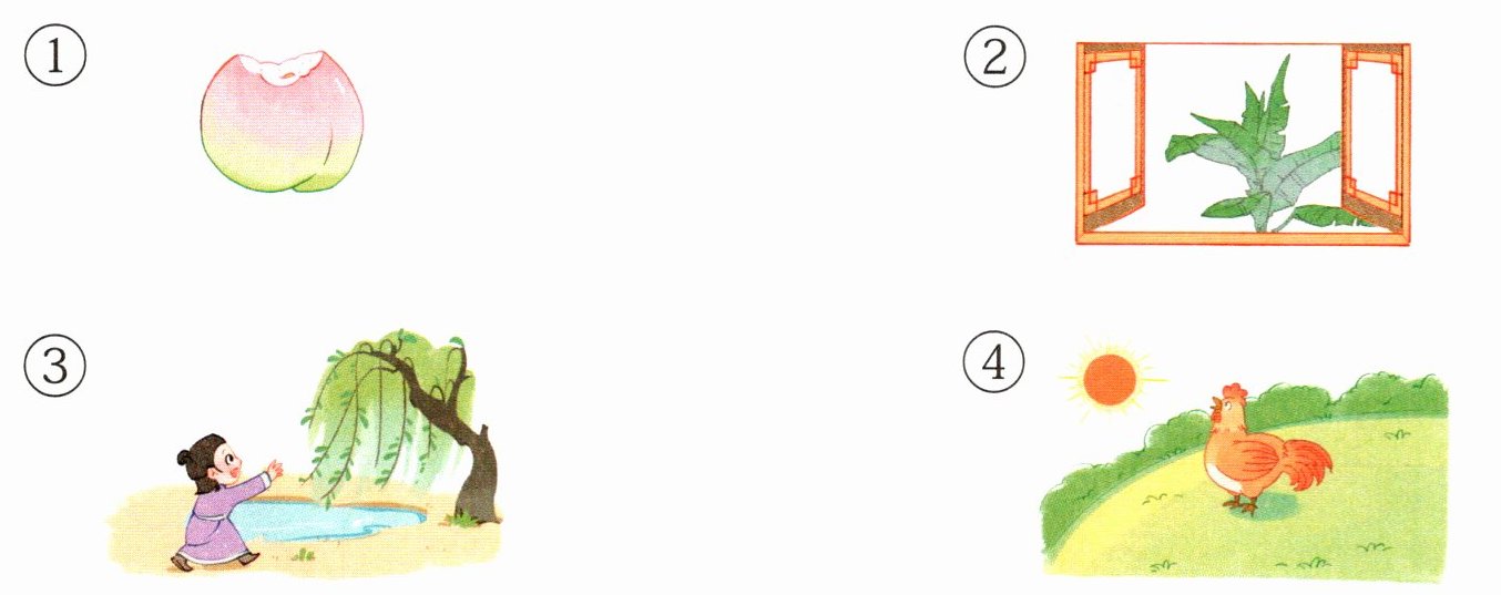 【解析】本题考查对古诗内容的理解。根据古诗题目中的“初夏”可知季节是夏季(或初夏)。古诗中并没有提到公鸡,故选④。