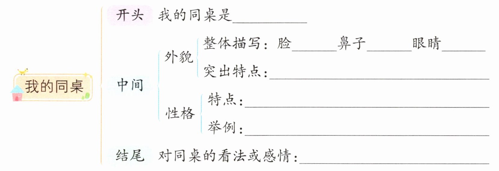 现在你知道怎么写了吗?可以仿照上面的文段,把自己的同桌介绍给家人。