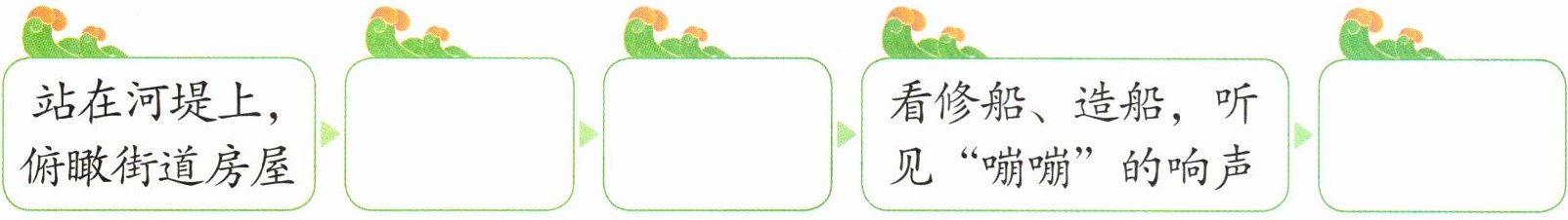 看船、看撑篙的人如何撑篙行船 看打鱼、看打鱼人利用鱼鹰捕鳜鱼的情景 看船家炊烟、闻饭菜香味