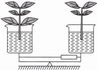 8. 如右图所示,天平两端相同大小的盛有水的烧杯中各插有一根枝条,且两根枝条的叶片数量不同,天平两端保持平衡。现将此装置移至光下一段时间,会出现的变化是(