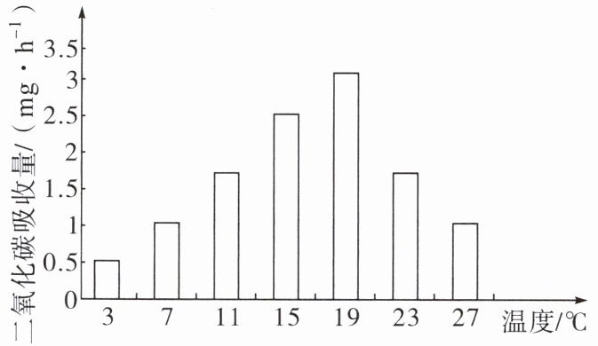 12. 某生物兴趣小组的同学开展项目式学习,通过实地测量、收集资料,寻找提高大棚蔬菜产量的方法。本实验以菠菜为实验材料,研究温度对光合作用的影响,结果如右图所示。
