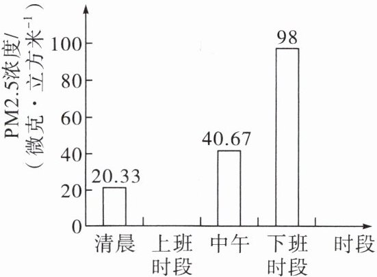 (2)PM2.5 是指环境空气中空气动力学直径小于等于 2.5 微米、大于 0.1 微米的颗粒物。它能较长时间悬浮于空气中,其在空气中浓度越高,就代表空气污染越严重。为了探究空气中 PM2.5 的浓度与车流量是否相关,某校同学在城市主干道周边对空气进行采样,采样时段与 PM2.5 浓度的关系如下表。