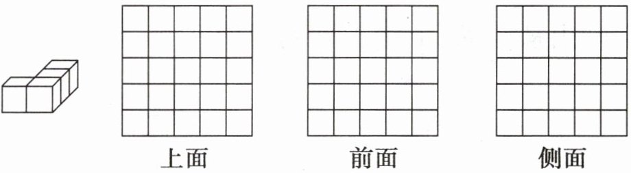 7. 在方格里画出下面的立体从上面、前面和侧面看到的图形。