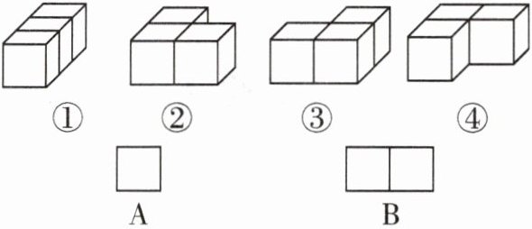 图形①从左面看,可看到4个正方形,只有1行,不是B;图形②从左面看,可看到2个正方形,分2行,第一行有1个靠左,第二行有1个,不是B;图形③从左面看,可看到4个正方形,分2行,第一行有2个,第二行有2个,即形状为B;图形④从左面看,可看到4个正方形,分2行,第一行有2个,第二行有2个,即形状为B。