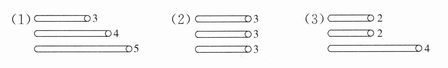 (3)$2 + 2 = 4$,不满足两边之和大于第三边,不能摆成三角形,不画“√”。