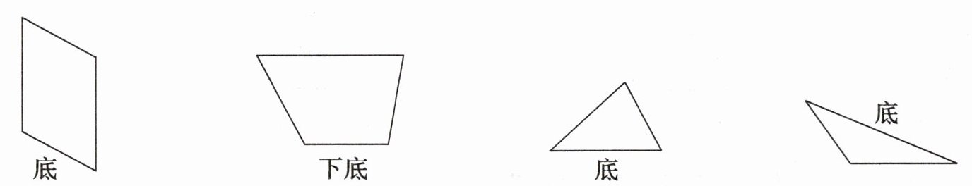 1. 平行四边形:从与“底”相对的顶点向“底”作垂线,标出垂足和“高”。