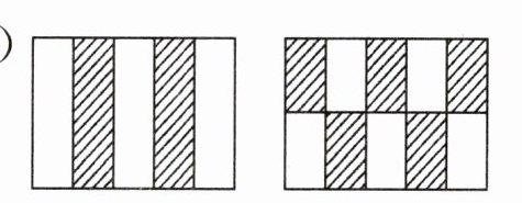 (1) 第一个图形把一个长方形平均分成$5$份,阴影部分占$3$份,所以表示的分数是$\frac{3}{5}$;
