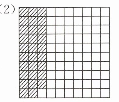 对于图(1),把一个长方形平均分成10份,阴影部分占其中的3份,根据分数的意义,用分数表示为$\frac{3}{10}$;根据小数的意义,十分之几可以写成一位小数,所以$\frac{3}{10}=0.3$。